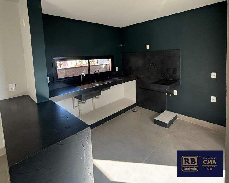 Cozinha espaçosa com bancada em granito e piso em porcelanato