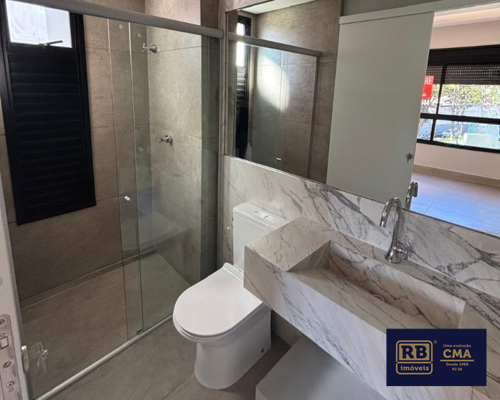 2 quartos amplos, todos com piso em porcelanato, sendo duas suítes com bancada em granito e box em blindex